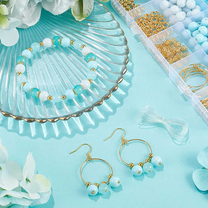 Create stunning jewelry in minutes with this all-in-one DIY bracelet and earring kit! Packed with 200 colorful glass beads in four shades of pink or blue, plus brass accents, jump rings, clasps, and earring hooks, you'll have everything needed to craft beautiful pieces. The kit includes elastic thread for quick bracelets and components for more intricate designs—perfect for beginners and jewelry enthusiasts alike. Mix, match, and make magic with your hands!