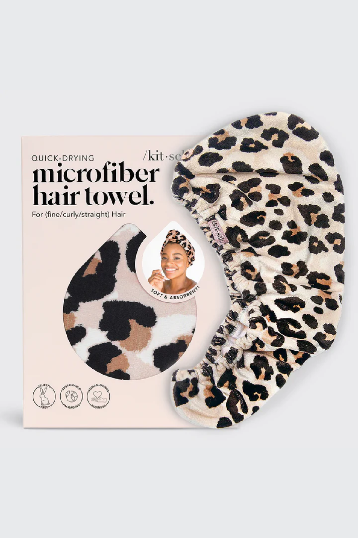 Cut your drying time in half with these soft microfiber towels. The absorbent material gently wraps all hair types while reducing frizz and breakage. An elastic pocket fits securely on any head size, making post-shower styling faster and easier.